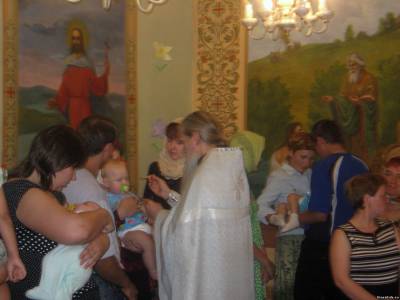 Это мой старший сын, Георгий, во время миропомазания, на руках у крестного, я стою рядом как крестная... родители не участвуют