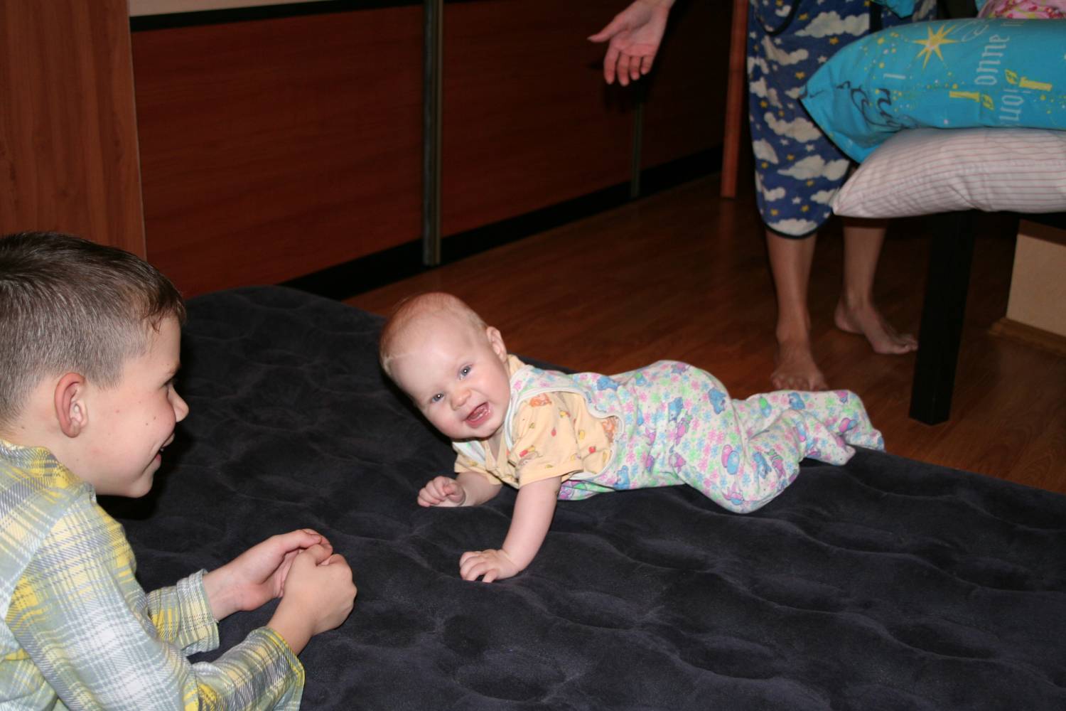 | Iris, а у меня она до сих пор сама не садится почему-то... Ползает по -пластунски, на четвереньки встает-качается, в ходунках гоняет, посадишь-сидит, не падает (если старший не поможет ), а сама не садится...