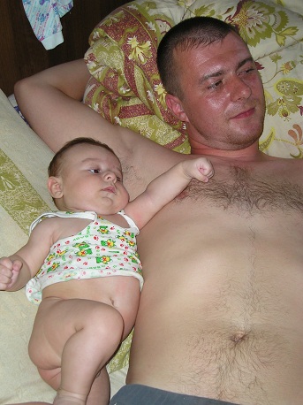 | Маруся, ну вылитый папа!!!Надо-же так быть похожими!!!Прикольно!!!Ниче вы вымахали на 900гр поправились, а мы стройняшки блин.Пузико то вон какое наел!!! tachanka, вы тоже вон какие кругляшки,ножки все в складочках. Такие детки у нас прикольные!!! Ольчик, Quote (Ольчик) Жаль что не получилось лично познакомиться. Ну теперь уж в следующий раз, я просто с кем договоривалась у всех спросила , сколько и чего назаказываи, а твой заказ просто вручили и даже не посмотрели сколько пачек ты заказала. Маруся, тебе тоже хотели одну пачку вручить, но я сразу смотрю мне не докладывают ,посмотрели по ведомости, и доложили А вот и мой Ромашка
