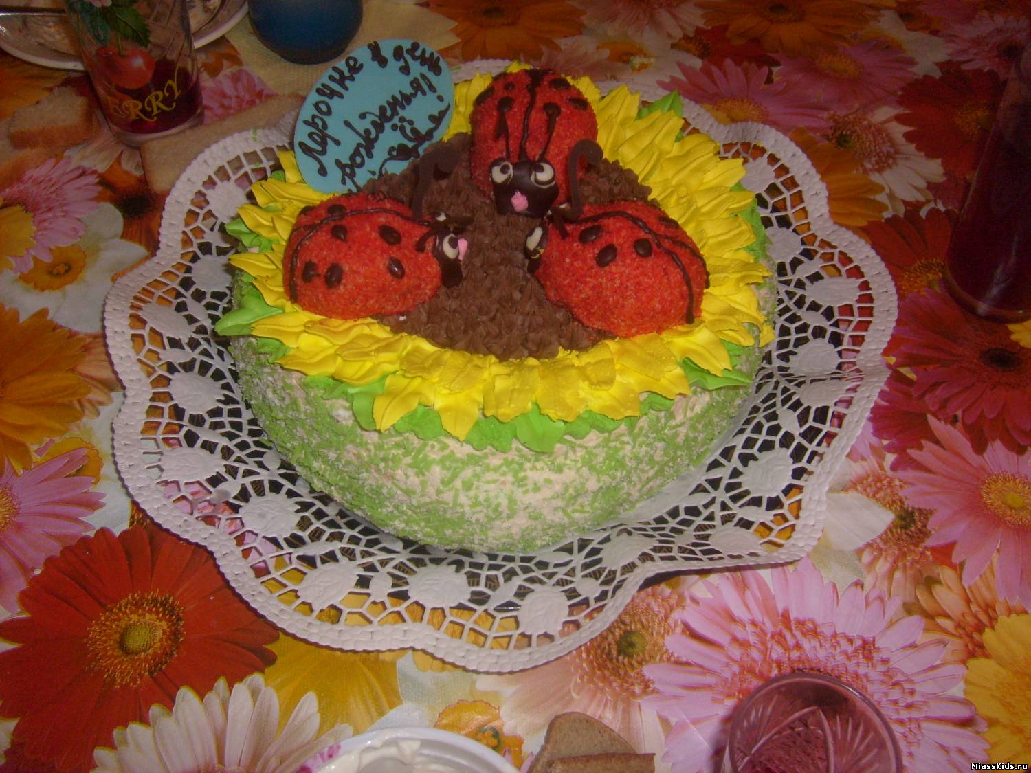 | Про тортики речь шла, мы такой тоже в сладбурге заказывали Лере на 3 годика. Она нам сама заказала с божьими коровками.